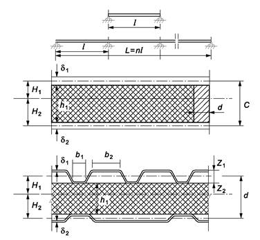 3.4 двухслойная ограждающая конструкция: Конструкция, состоящая из несущей профилированной металлической облицовки и приформованного к ней слоя пенопласта с гидроизоляционным или защитно-декоративным покровным слоем, предназначенная для покрытий производственных зданий.
