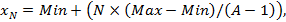Пороговое значение вычисляемого шага 1 балла (xN), которое рассчитывается как разница между максимальным значением в массиве данных и минимальным значением в массиве данных, разделенная на количество шагов условной шкалы, и определяется по формуле: