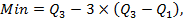 Q1 - значение нижнего квартиля по выбранным абсолютным значениям;