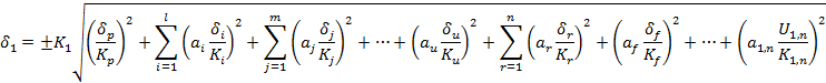 K1, Kр, Ki, Kj, Ku, Kr, Kf - коэффициенты, зависящие от закона распределения соответствующей погрешности δ1, δр, δi, δj, δu, δr, δf и установленной вероятности;