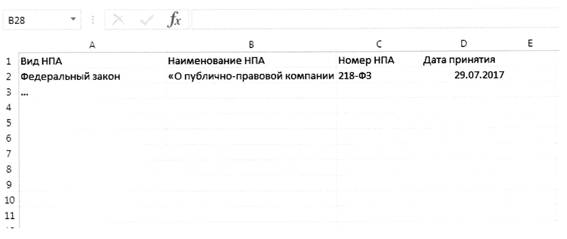 Пример формирования перечня нормативно-правовых актов