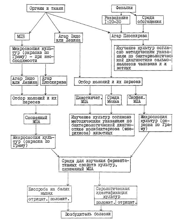 4.1. Серологическую идентификацию культур эшерихий и сальмонелл проводят в соответствии с действующими «Методическими указаниями по бактериологической диагностике колибактериоза (эшерихиоза) животных» и «Методическими указаниями по лабораторной диагностике сальмонеллезов человека и животных, обнаружению сальмонелл в кормах, продуктах питания и объектах внешней среды». Культуры названных бактерий относят к возбудителям болезни на основании показателей, указанных в этих методических указаниях.