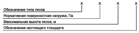 4.2.1 Устанавливают следующую структуру условного обозначения марок лесов.