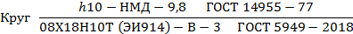 В.9 Металлопродукция со специальной отделкой поверхности, круглая, квалитета МО, в мотках (НМД), диаметром 9,8 мм, с качеством отделки поверхности группы В по ГОСТ 14955-77, из стали марки 08Х18Н10Т (ЭИ914), в закаленном состоянии (3), по ГОСТ 5949-2018: