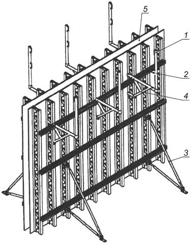 5.1.2 Конструктивная схема опалубки вертикальных конструкций выбирается в зависимости от характера монолитных конструкций, объемов и технологии бетонирования, экономических соображений.