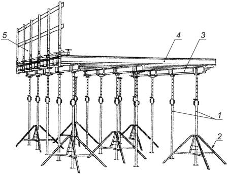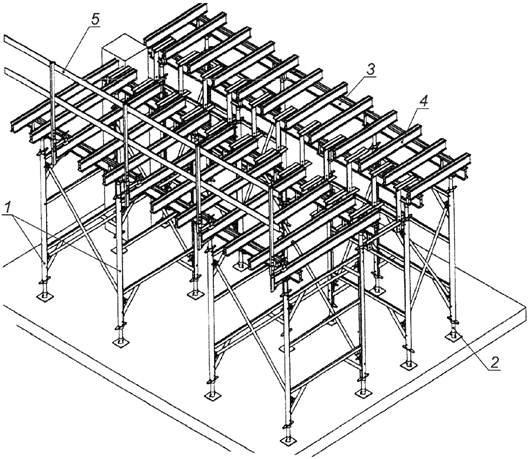 1) при небольшой высоте бетонирования конструкций (до 4,3 м) - телескопические стойки;