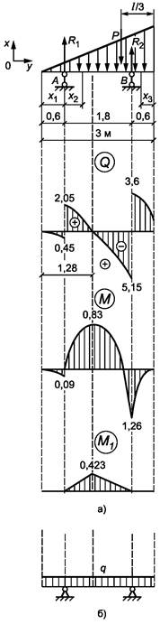Эквивалентная равномерно распределенная нагрузка q = 3,4 (для сравнения с треугольной нагрузкой).