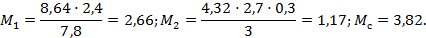 Нагрузка верхней части эпюры 7,2·1,2 = 8,64, нижней - 3,6·1,2 = 4,32.