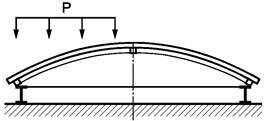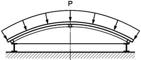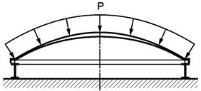 П.3 При снеговой нагрузке ее увеличение происходит очень медленно, и воздух может выходить из подушки. В этом случае внутреннее давление необходимо отрегулировать так, чтобы оно было на одно значение выше значения снеговой нагрузки. Эта ситуация приведена на рисунке П.3. Определить величину регулируемого внутреннего давления должен инженер в зависимости от условий проектов.