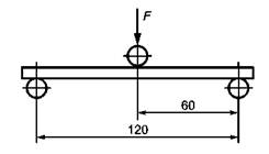 Образец устанавливают лицевой поверхностью в сторону приложения нагрузки на опоры копра, расстояние между которыми должно быть (70 ± 1) мм.