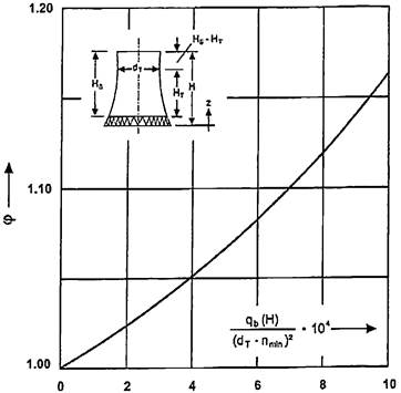 где qb - скоростной напор ветра на вершине градирни высотой H;