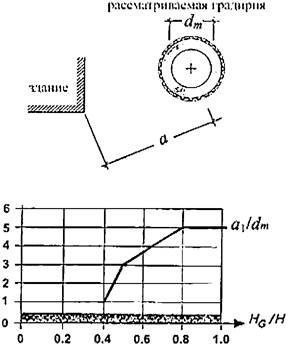 Влияние помех для случаев «градирня - здание» находят по рисунку Д.4 в зависимости от отношения НG/Н, где НG - высота здания, H - высота градирни.