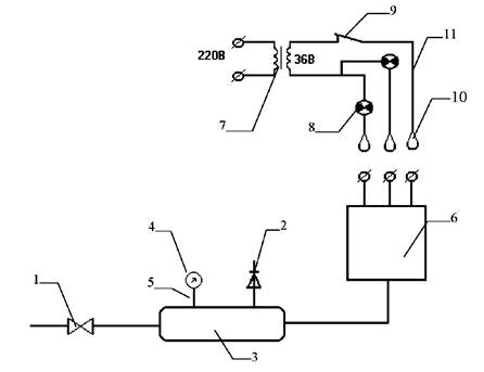 Соединение труб с разобщительным краном грузового вагона, запасным резервуаром, тормозным цилиндром, авторежимом |