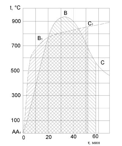 Аналитический способ перехода к эквивалентной длительности интенсивного горения осуществляют из равенства площадей