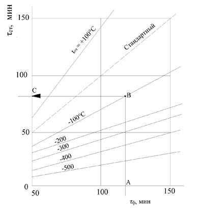 - полученное значение (точка С) - искомое значение эквивалентной длительности интенсивного горения при пожаре τэ.