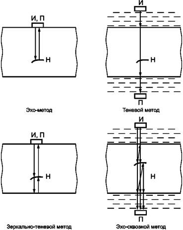 Примечание - → - направление прозвучивания; D - наружный диаметр; H - толщина стенки трубы; И - излучатель; П - приемник. |