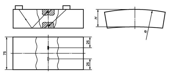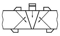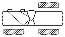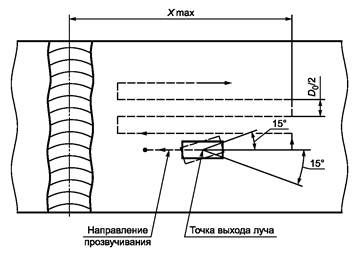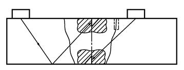 - изменение угла УЗ-луча при прохождении наплавленного металла АСС; определяют только для наклонных преобразователей продольных волн с номинальной толщиной свариваемых элементов от 20 до 100 мм.
