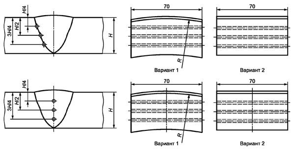 - амплитуду эхо-сигнала от несплошностей, обнаруженных через наплавленный металл по линии сплавления АСС соединения, необходимо сравнивать с амплитудой от соответствующих БЦО НО, расположенных по линии сплавления через наплавленный металл АСС.
