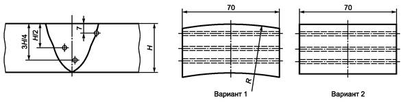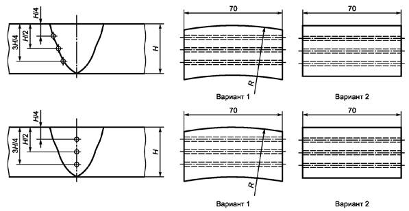 А.1.2.1.6 Контролепригодность при применении преобразователя головных волн определяют по А.1.2.1.1 - 1.2.1.4, применяя БЦО, расположенное на глубине 7,0 мм в НО (см. рисунок 6в).