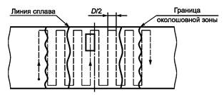 - амплитуду эхо-сигнала от несплошностей, обнаруженных у ближней к ПЭП линии сплавления АСС, сравнивают с амплитудой от соответствующих БЦО НО со стороны основного металла;
