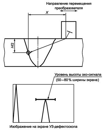 9.4.5 Сравнение амплитуды эхо-сигнала от несплошностей прямым PC-преобразователем проводят с амплитудой от соответствующего БЦО НО, расположенного на той же глубине залегания, что и обнаруженная несплошность.