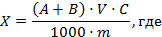 m - масса (объем) анализируемого образца, г, см3;