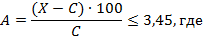 δ - граница относительной погрешности методики (показатель точности в соответствии с диапазоном концентраций, табл. 1), %.