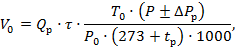 14.6 Объём отобранной пробы газа (V0, м3), приведённый к нормальным условиям (Т0 = 273 К, Р0 = 760 мм рт. ст., сухой газ), рассчитывают по формуле: