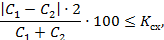 где C1 и С2 - массовая концентрация оксида алюминия в пробе анализируемого объекта, результаты измерений одновременно отобранных проб газа, мг/м3;