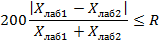 14.2 При получении результатов измерений в двух лабораториях (Xлаб1, Хлаб2) проводят проверку приемлемости результатов измерений в соответствии с требованиями ГОСТ Р ИСО 5725-6 (раздел 5).