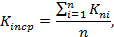 Далее рассчитывают усредненный поправочный коэффициент Kincp для каждого определяемого вещества во всем диапазоне измерений как среднее арифметическое значение полученных коэффициентов Kni по формуле