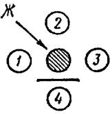 После застывания агара в нем делают лунки с помощью тонкостенной металлической или стеклянной трубочки с внутренним диаметром 4 - 5 мм, располагая их согласно трафарету (см. рис. 1 - 4).