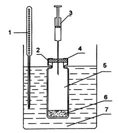 5 - равновесный сосуд; 6 - проба; 7 - термостатируемая жидкостная баня