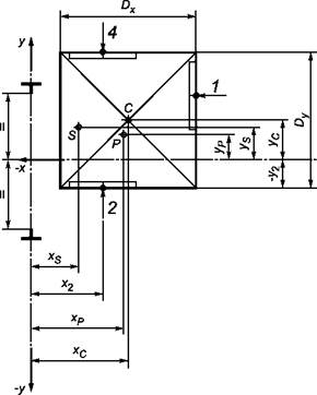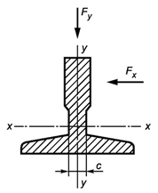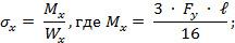 b) Напряжение поперечного изгиба от силового воздействия вдоль оси х (см. рисунок А.3) рассчитывают по следующим формулам: