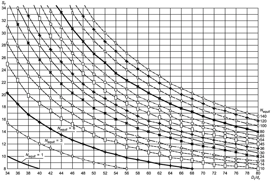 а) Определение эквивалентного числа блоков рассчитывают для следующих условий в соответствии с рисунком С.1: