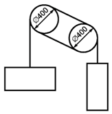 Рисунок С.3 - Прямая подвеска 1:1 (с двойным обхватом шкива канатом). Канатоведущий шкив с полукруглой канавкой |