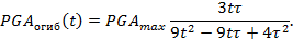 PGAогиб(t) = PGAmax 3tτ/(9t2 - 9tτ + 4τ2). |