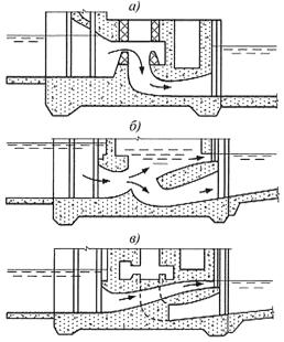 а) - через турбинный тракт; б) - через