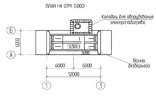 3.1.5 въездной дезбарьер: Ванна с подогревом или без подогрева дезраствора, обеспечивает дезинфекцию колес въезжающего автотранспорта на территорию животноводческого, птицеводческого или звероводческого предприятия и предотвращение попадания отработанного дезраствора в почву.