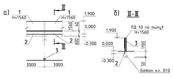 1 - железобетонная панель ограждения; 2 - железобетонные