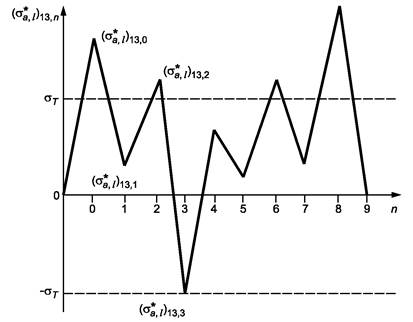 При проведении расчетов указанные числовые последовательности значений нагрузок и воздействий, как правило, заменяют схематизированными процессами с заданными распределениями амплитуд колебаний этих значений и равными повреждающими способностями по отношению к исходным процессам. Схематизация процессов нагружения может быть проведена в соответствии с методами, установленными ГОСТ 25.101.