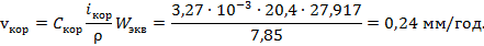где Cкор = 3,27 ∙ 10-3 - константа, соответствующая перечисленным в М.1 единицам измерения, значение которой позволяет получить в результате расчета размерность скорости коррозии vкор, мм/год.