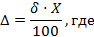δ - граница относительной погрешности методики (показатель точности в соответствии с диапазоном концентраций), %.