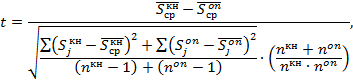 где nкн; non - число кювет в контрольной и опытной группах соответственно.