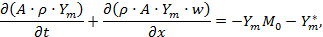 Для определения пространственного распределения концентрации (фактически переменных величин, входящих в формулы (5) и (6)), профиль которой задан формулами (5) и (6), используются следующие уравнения: сохранение массы выброшенного аммиака qil: