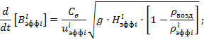 ulэффi - эффективная скорость движения вторичного облака, образующегося на l-й стадии поступления опасного вещества в атмосферу на i-м сценарии, м/с;