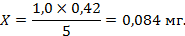 Например, 0,6 мл сточной воды гемолизирует 0,25 мл 10-процентного раствора крови, следовательно 1 мл гемолизирует 0,42 мл крови. Отсюда находим содержание сапонина в 1 мл сточной воды.