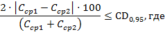 Критическая разность для результатов анализа, полученных в двух лабораториях, CD0,95, % (n1 = n2 = 2) |