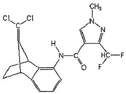 N-[(1RS, 4SR)-9-дихлорметилен)-1,2,3,4-тетрагидро-1,4-метаннафтален-5-ил]-3-дифторметил)-1-(метилпиразол-4-карбоксамид (ИЮПАК).