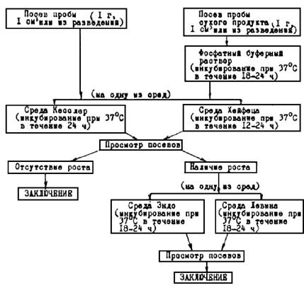 Взятие смывов осуществляют без предупреждения перед началом работы. Каждый смыв исследуют на выделение бактерий группы кишечных палочек (БГКП), а по мере необходимости определяют содержание аэробных и факультативно-анаэробных микроорганизмов (общее микробное число - ОМЧ на 1 см2 поверхности), а также другие виды микроорганизмов в случае выявления источника обсеменения продуктов (сальмонеллы, клостридии и др.).